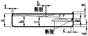 總和不大于相關輪廓的10%;t—允許的斷裂深度為1.5%S;e—毛刺高度(mm);c—塌角寬度為30%S(最大);d—塌角深度為20%S(最大)(齒形件時為30%S);E—撕裂帶的最大寬度。